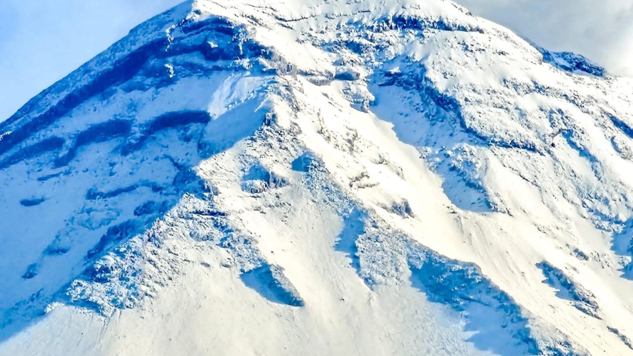 El Popo se pone en modo Navidad; amanece con nieve y ceniza