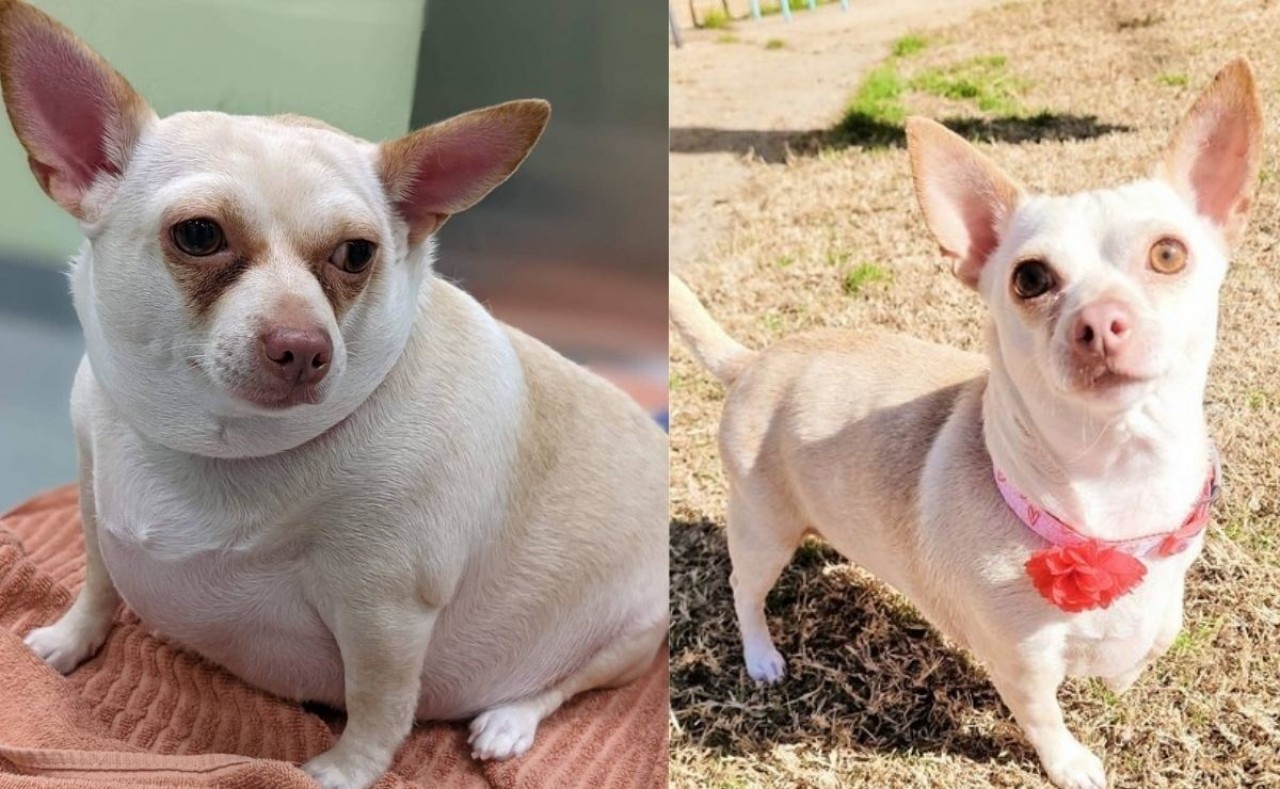 La perrita pesaba más de 10 kilos, cuando los chihuahuas pesan a lo mucho más de dos, por lo que entró a una estricta dieta y ejercicios a lo largo de ocho meses, e incluso su jaulita tenía un letrero que decía que no le dieran premios, en un viaje por recuperar su salud y encontrar un hogar.