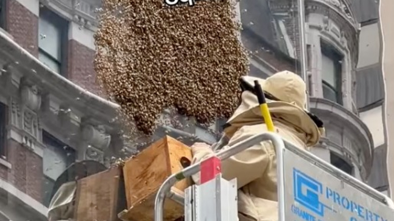 Miles de abejas invadieron Times Square, en Nueva York, el pasado fin de semana, desatando caos entre transeúntes.