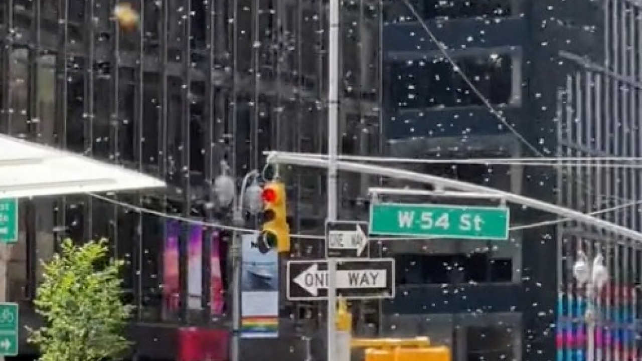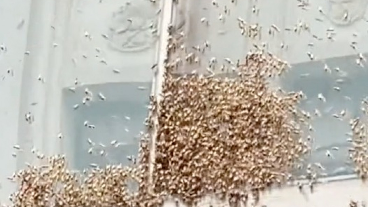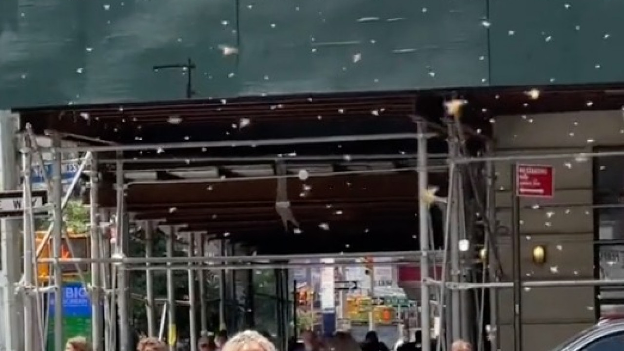 El enjambre estaba en la fachada de un rascacielos y los insectos revolotearon por el corazón de la Gran Manzana, durante aproximadamente 15 minutos.