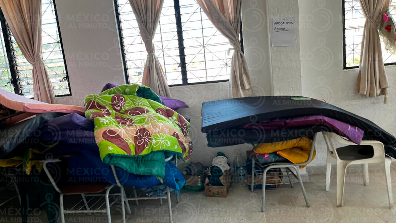 Incluso se puede observar el uso de cocos como platos, así como colchones y mantas en el albergue dispuesto para recibir a quienes se quedaron sin hogar.