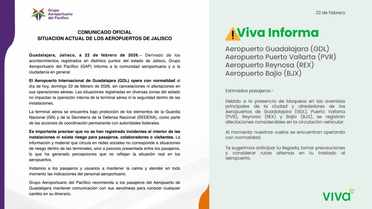 Aerolíneas continúan con los vuelos regulares y el Aeropuerto Internacional de Guadalajara informó que no se ha reportado actividad inusual dentro de la terminal.