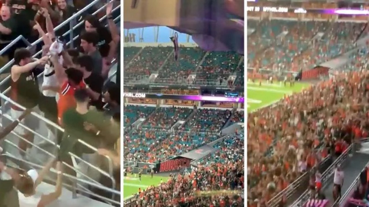 Un grupo de aficionados se apresuró a unirse para rescatar a un gatito que colgaba peligrosamente del techo del Hard Rock Stadium, en Miami, Florida, durante un partido de fútbol americano.