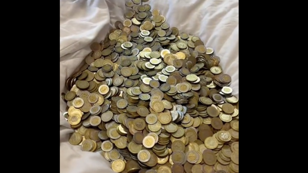 “Llegó el día de contar el dinero", explicó y las separó por denominaciones para hacerlo más fácil, obtuvo 17 mil 900 pesos en monedas de 10, y 14 mil 320 pesos en monedas de cinco.