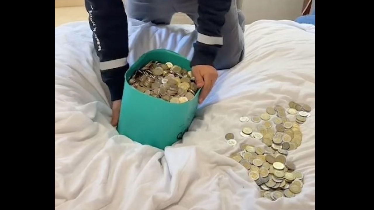 Compartió un video en el que mostró el bote que usó como alcancía y el cual rompió para liberar las monedas.