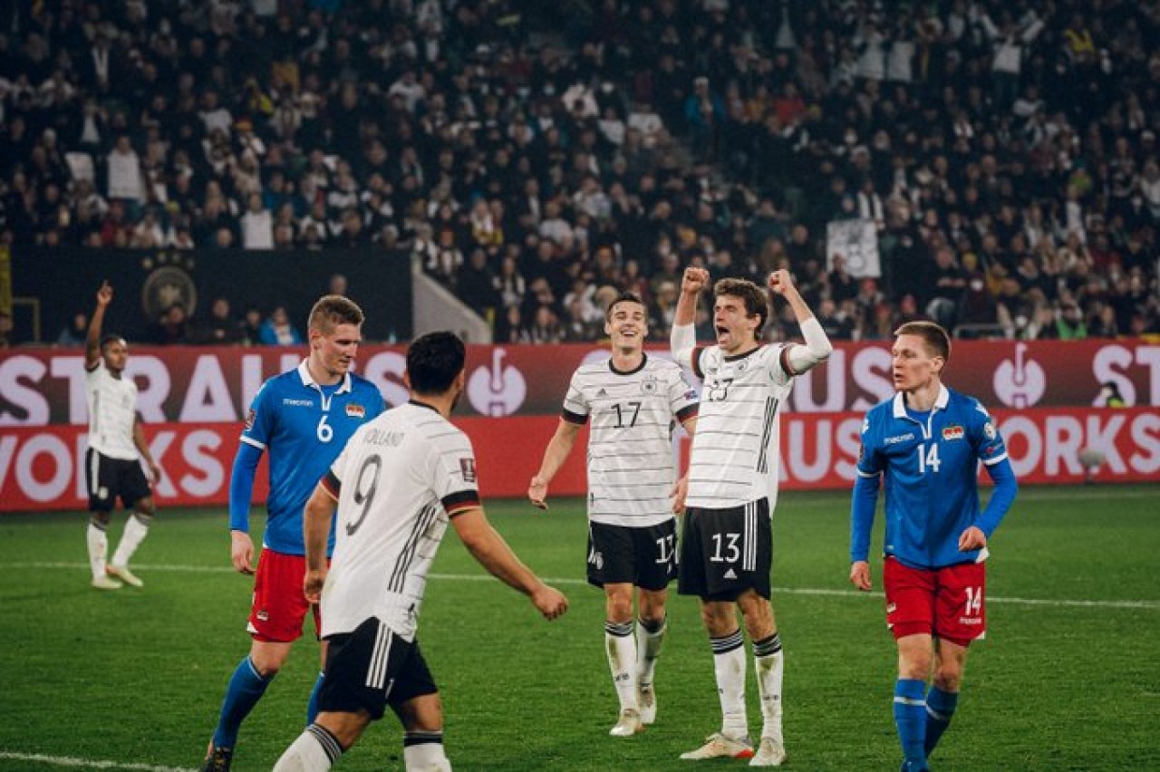 Alemania, ya clasificada matemáticamente a Qatar 2022, pasó este jueves la apisonadora sobre la modesta Liechtenstein, en un partido que saldó con una goleada de nueve a cero y que tuvo que afrontar en inferioridad durante gran parte por la expulsión de Hofer.