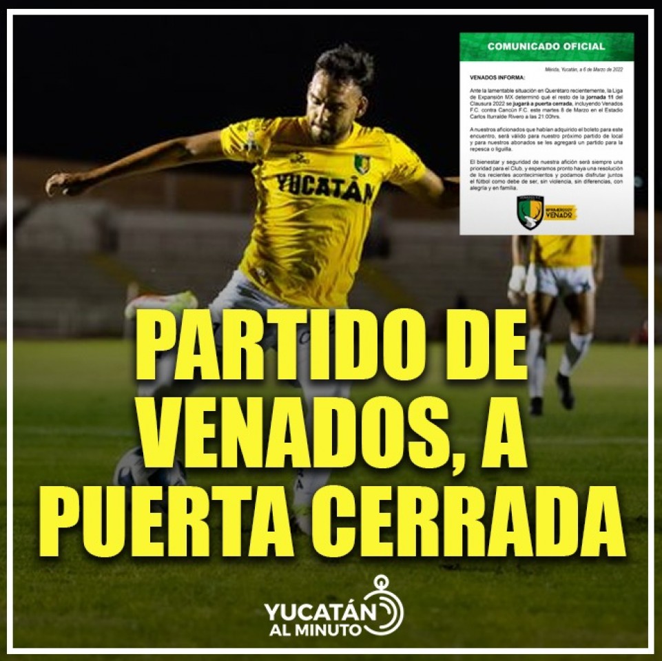 “Ante la lamentable situación en Querétaro recientemente, la Liga de Expansión MX determinó que el resto de la jornada 11 del Clausura 2022 se jugará a puerta cerrada, incluyendo Venados F.C. contra Cancún F.C.” se lee en un comunicado.