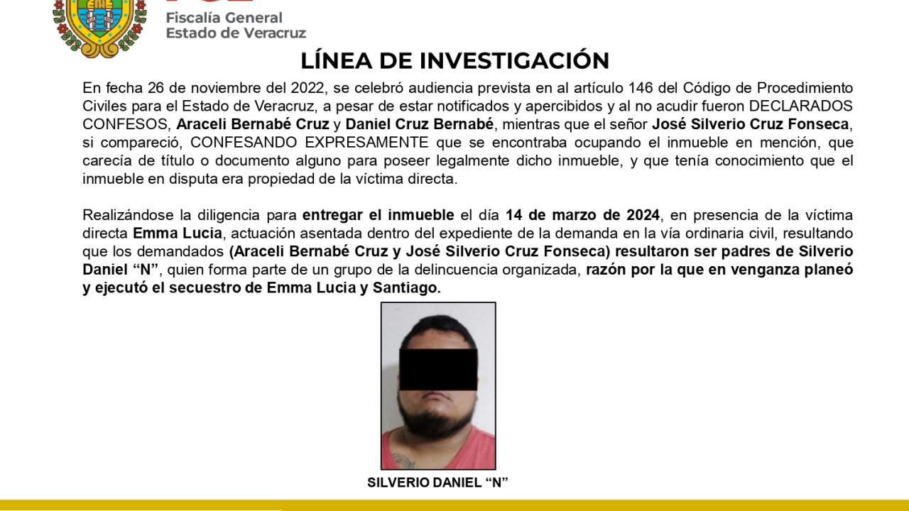 "El móvil del secuestro se originó con la demanda vía ordinaria civil que promovió la VICTIMA DIRECTA EMMA LUCIA el día 22 de enero del 2022", se lee en la presentación de la Fiscalía.