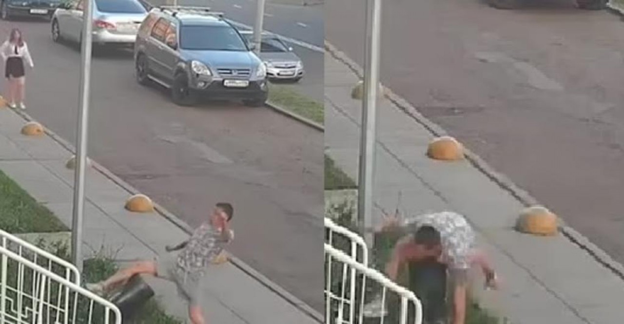 Un par de adolescentes en Rusia fueron “humillados” por un bote basura, cuando intentaron patearlo para impresionar a unas chicas que venían detrás de ellos en la calle de una ciudad que se presume es Náverezhnie Chelni.