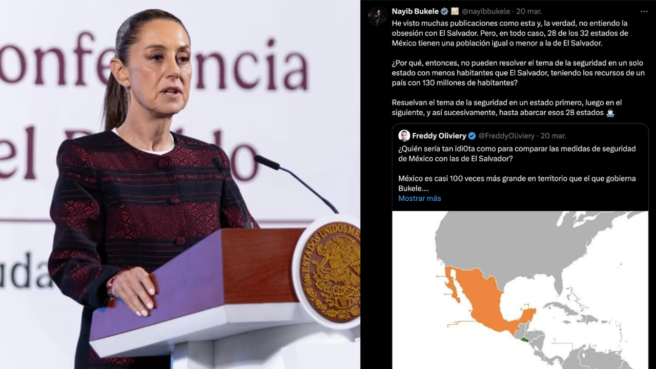 En respuesta, Sheinbaum dijo durante su mañanera que "no voy a entrar en debate con Bukele. La verdad podríamos aquí hacer todo un debate de la forma en que ellos están afrontando eso".