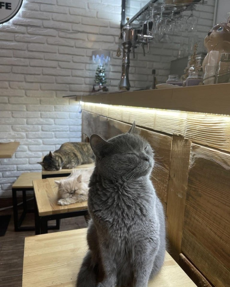 El lugar, ubicado en Leópolis, es el hogar de 20 gatos que conviven con los clientes y pese al conflicto, el miedo y la incertidumbre, permanece abierto para brindar servicio o simplemente ser un espacio seguro para el que quiera ir.