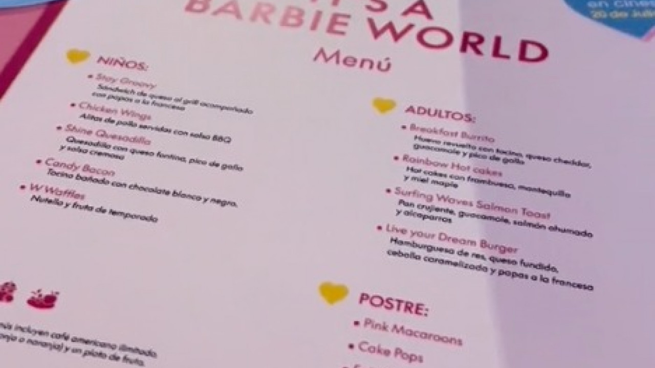 El lugar ofrece una variedad de alimentos y bebidas, con spots instagrameables y música. Está ambientado de color rosa con fotos de la película, además cuenta con una caja de la muñeca para fotografías, así como una máquina de palomitas.