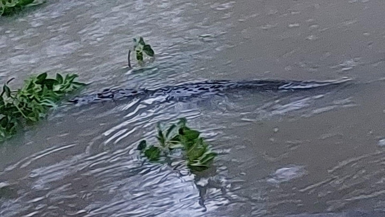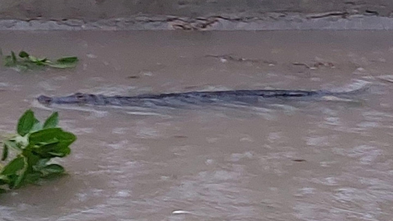 En Presidentes de México un lagarto fue avistado en la corriente de agua, ante el asombro de vecinos.
