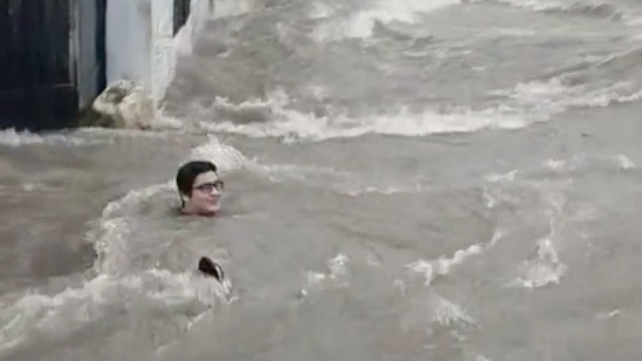 En Santa Lucía las corrientes de agua corrían como si fueran ríos, lo que provocó numerosos videos en redes sociales y el llamado de la autoridad a evitar accidentes, pues los campechanos salieron a bañarse.