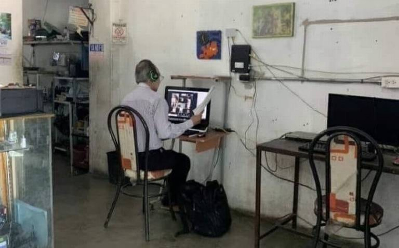 Recientemente, una usuaria compartió por Twitter la imagen de un maestro en un cibercafé impartiendo sus clases en línea, la que de inmediato se volvió viral por el extraordinario empeño del hombre por seguir trabajando a cualquier costo.