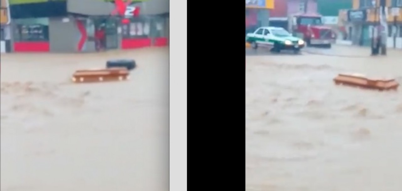 Captan ataúd flotando en inundaciones provocadas por Grace