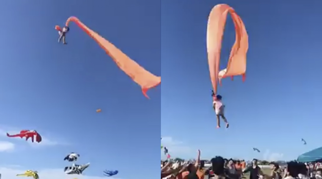 Durante un festival en Taiwán, una niña de tres años se acercó demasiado a un cometa y ésta la atrapó con su cola, para levantarla unos 10 metros en el aire, ante el horror de los asistentes.