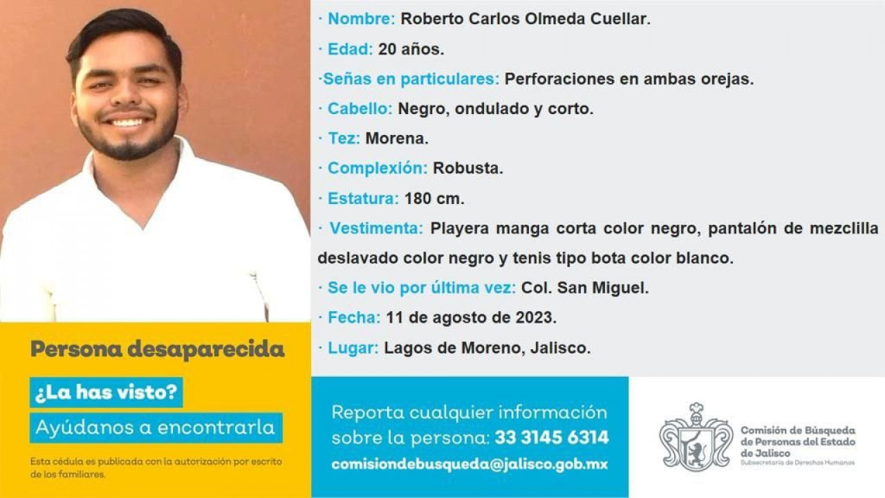 Cinco jóvenes, de entre 19 y 22 años, desaparecieron tras asistir en auto a una feria en el municipio Lagos de Moreno, Jalisco, el 11 de agosto.