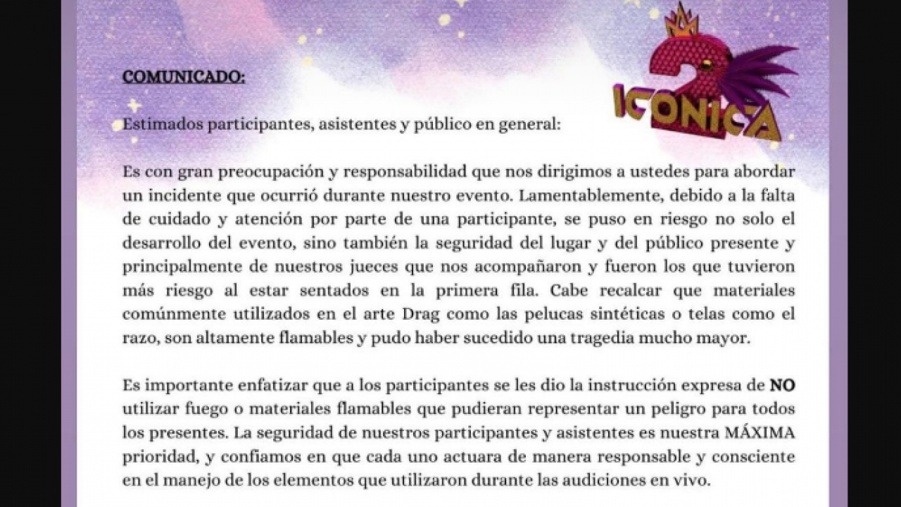 Durante la audición de la segunda temporada de la competencia de dragas, Icónica Mx, este fin de semana, una participante causó un incendio en el antro donde se realizaba el evento.