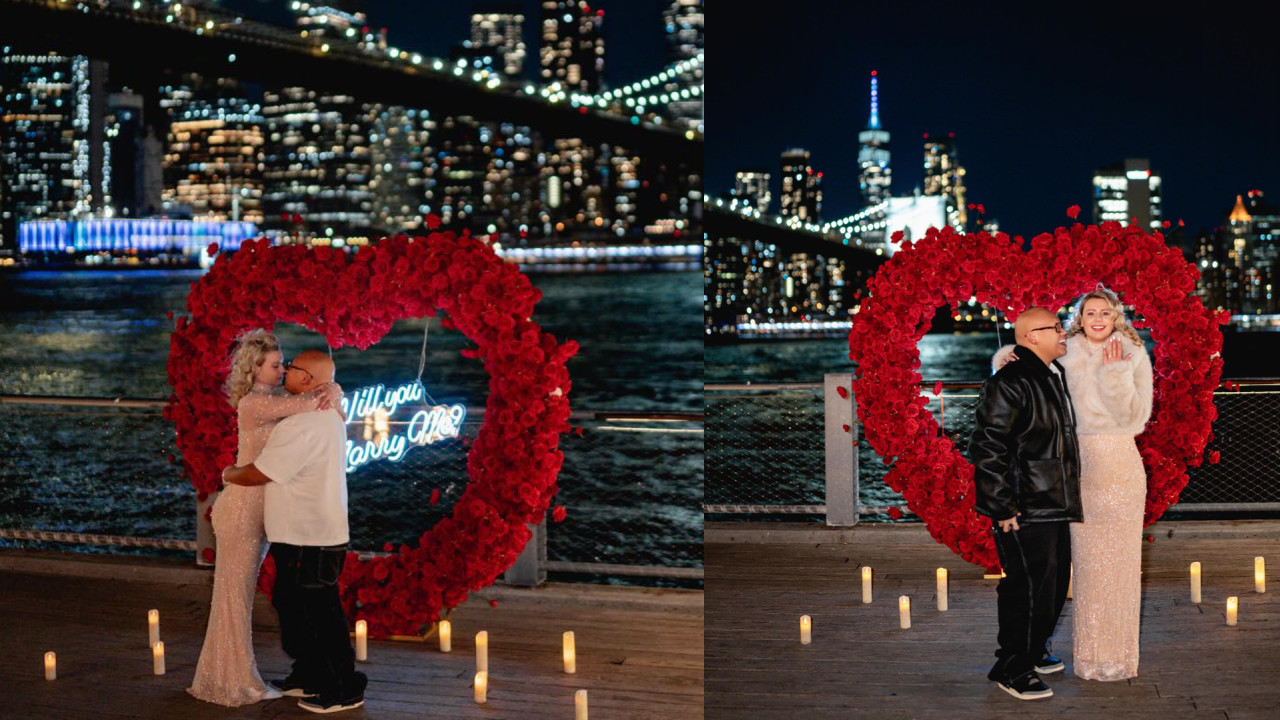 La romántica propuesta se llevó a cabo con el puente de Brooklyn de fondo y a la luz de la una, para la cual Veronica se vistió con un elegante vestido de gala.