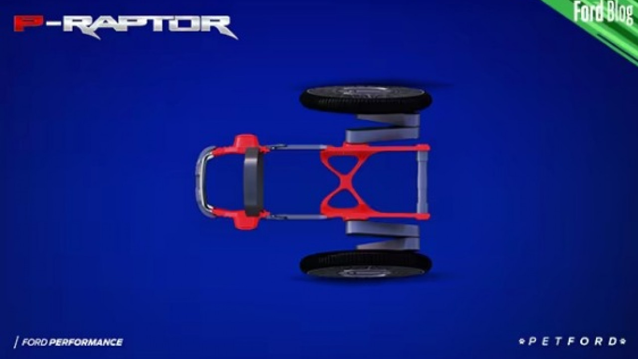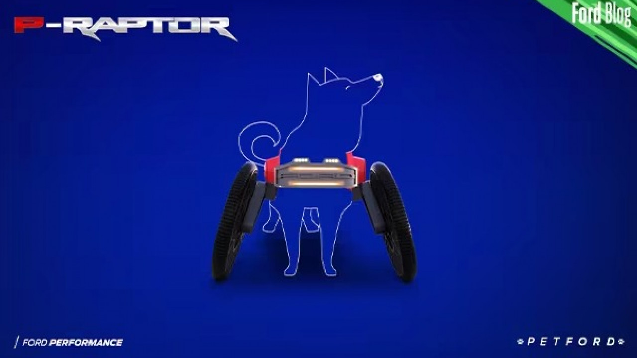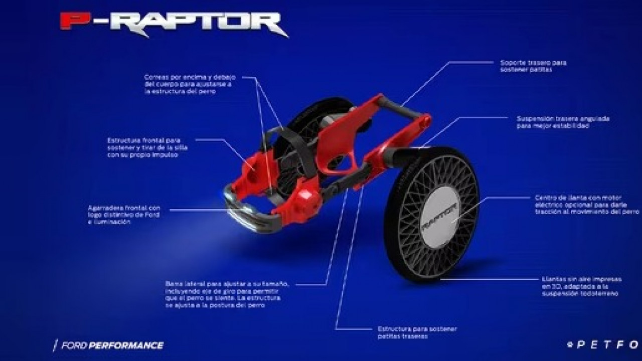 Empresa automotriz estadounidense anunció el lanzamiento de su más reciente modelo: P-Raptor, un carrito diseñado para perritos con poca movilidad en las patas traseras.