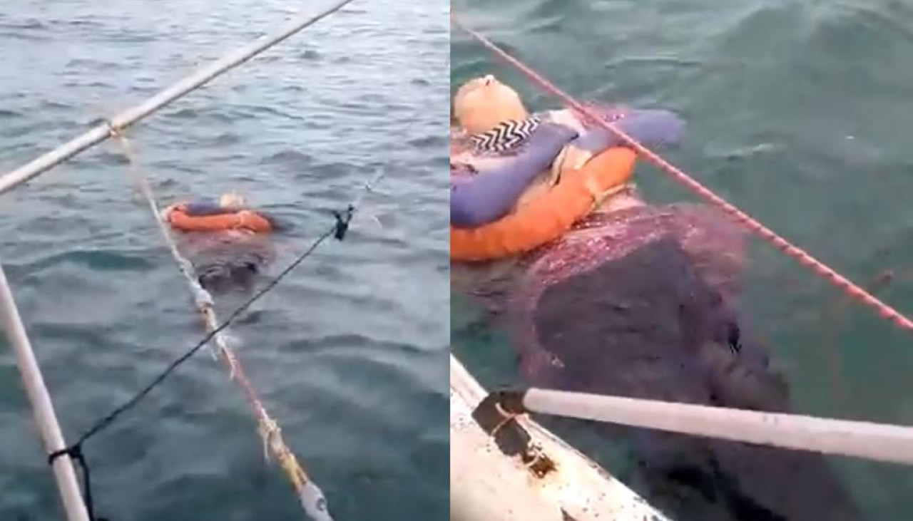 La mujer, identificada como Angélica Gaitán de 46 años, presentaba un cuadro de hipotermia tras pasar ocho horas flotando en el mar y se mostró confundida cuando los hombres la salvaron.