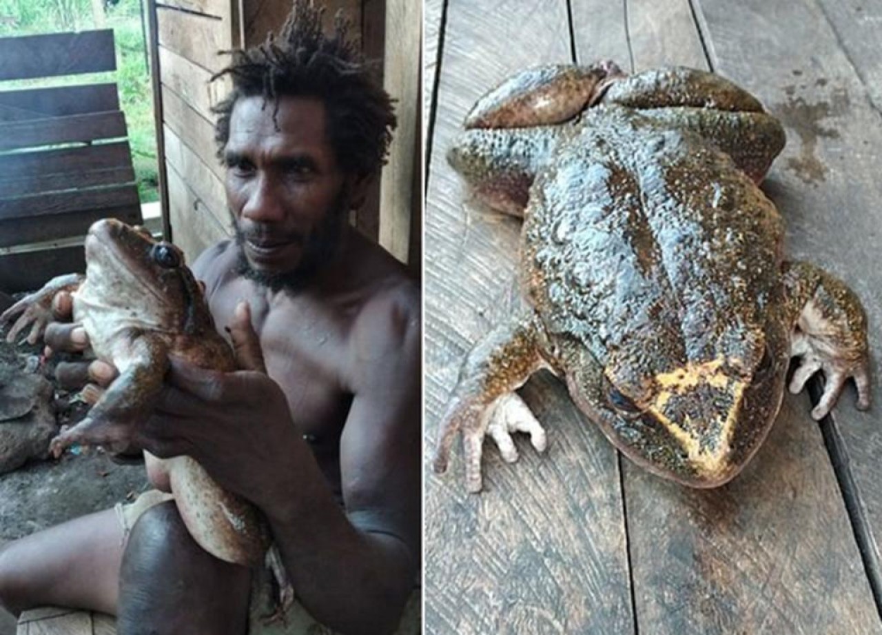 Un grupo de hombres que cazaban jabalíes a las afueras de la ciudad de Honiara, en las Islas Salomón, se quedaron sorprendidos al toparse con una “cornufer guppyi”, una de las especies de rana más grandes del mundo y esta en particular alcanzaba el tamaño de un recién nacido.
