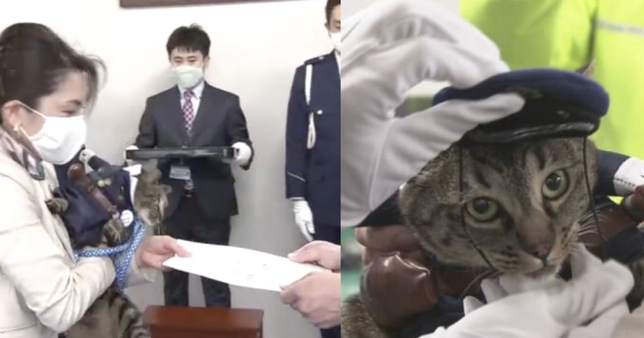 El año pasado en Japón, la gatita Koko salvó la vida de un adulto mayor que cayó a un canal de riego, por lo que fue recompensada primero con comida y ahora, coincidiendo con la campaña de seguridad vial de la ciudad de Toyama, fue “ascendida” a jefa honorífica de la Policía.