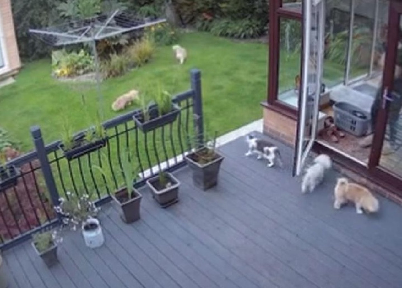 La dueña de unos perritos se vio en apuros para meterlos a la casa, pues estos le hacían caso omiso por seguir jugando, por lo que el gato de la familia decidió intervenir y corretear a los canes para obligarlos a entrar.