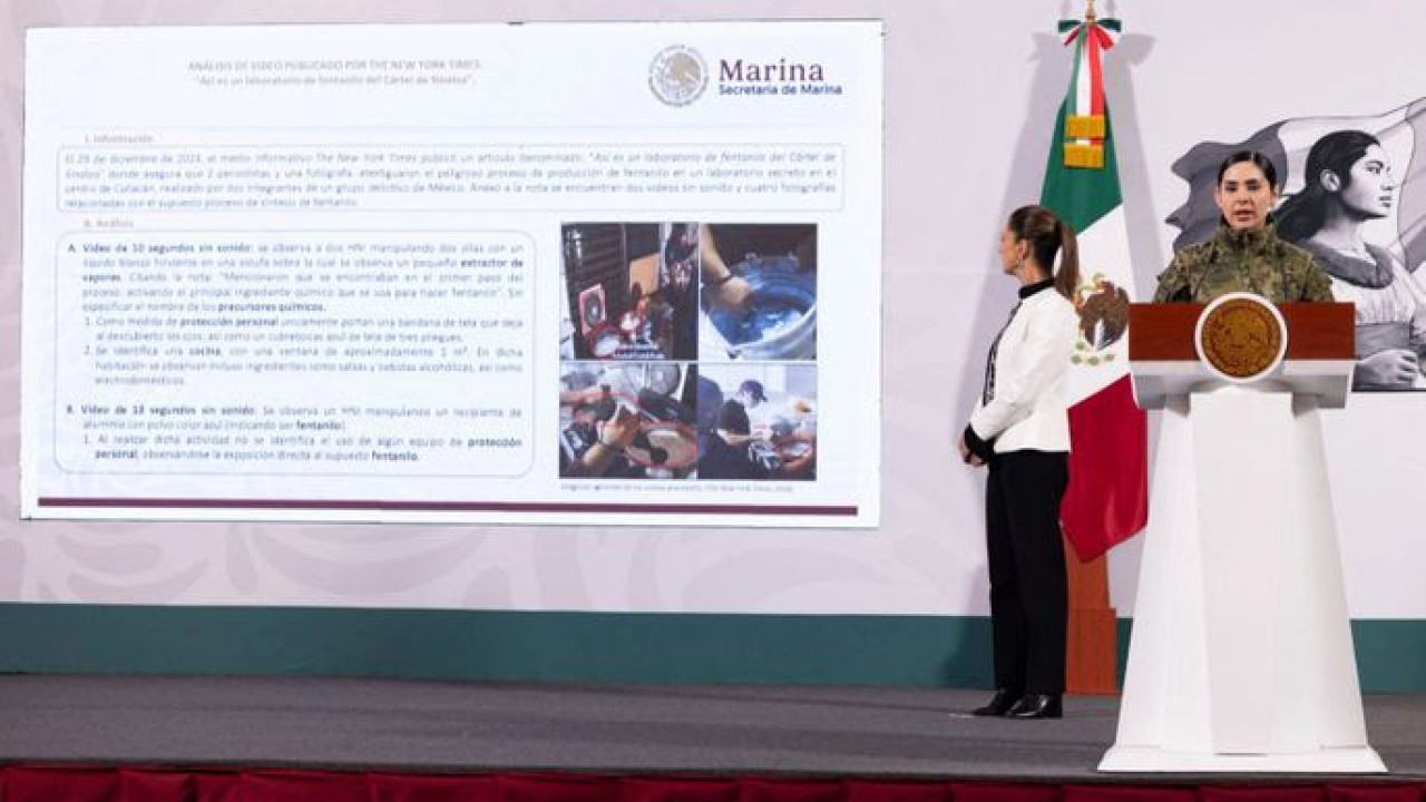 Al respecto, la química analista de precursores en campo de la Secretaría de Marina, teniente Juana Peñaloza Ibarra, precisó que luego de analizar la información publicada se concluyó que, no existen elementos suficientes para demostrar que la información presentada en el artículo de The New York Times documenta un laboratorio de síntesis de clorhidrato de fentanilo.