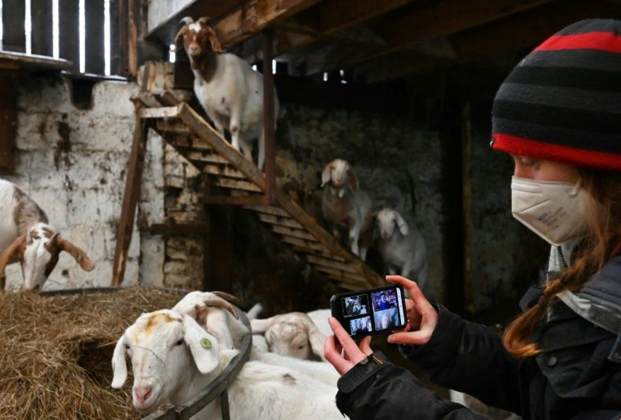 Granjera alquila cabras para alegrar videollamadas