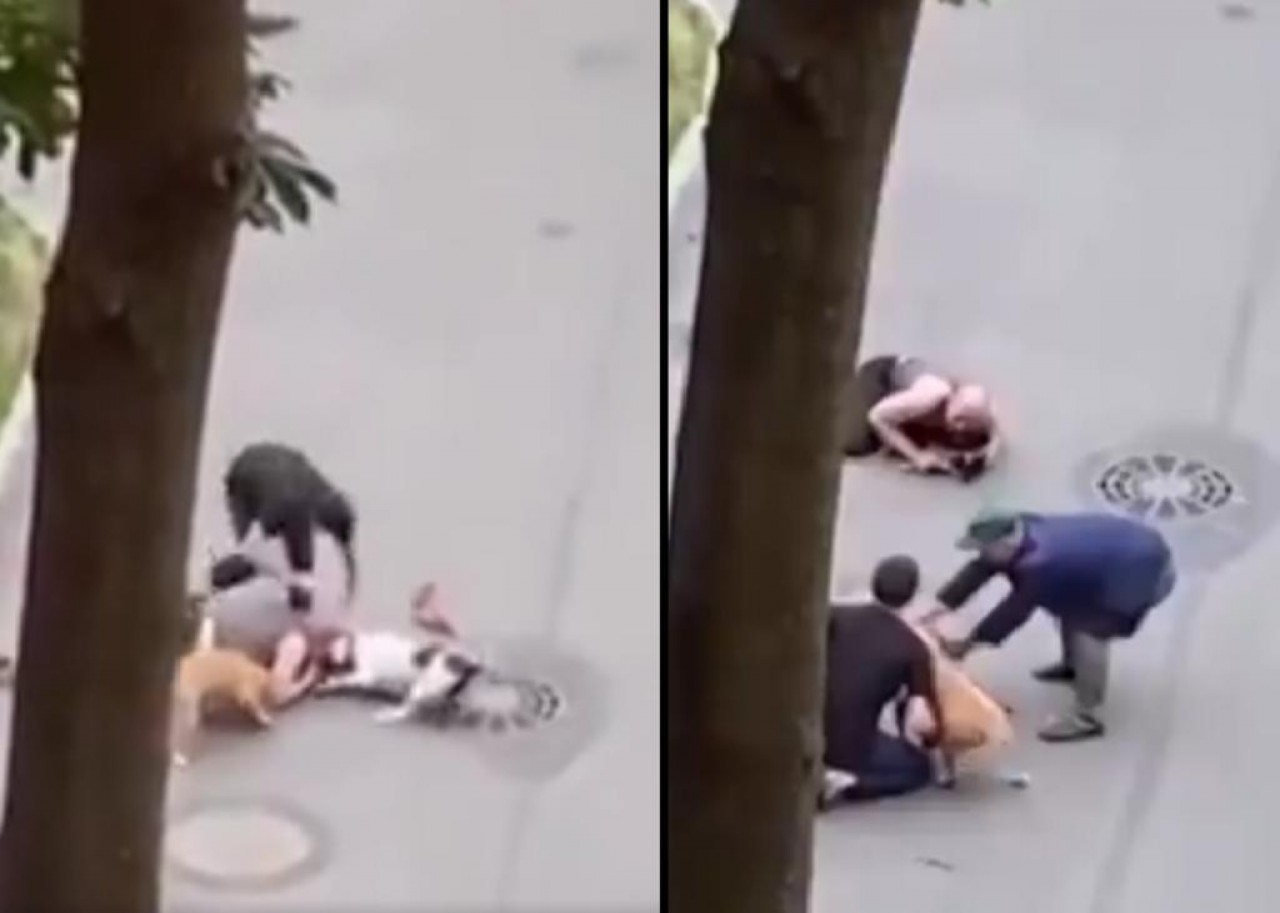 Un sujeto paseaba con su perro en las calles de San Petersburgo, Rusia, cuando dos american staffordshire terriers sin bozal y sin cadena se abalanzaron sobre ellos, momento que se hizo viral en las redes.