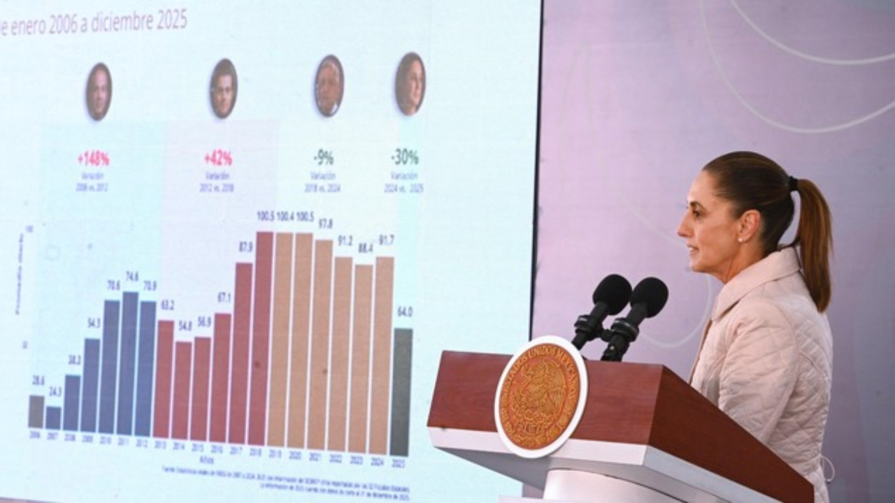 La titular del Secretariado Ejecutivo del Sistema Nacional de Seguridad Pública, Marcela Figueroa Franco, detalló que de forma anual los homicidios dolosos presentaron una reducción del 15 por ciento al pasar de 4.1 en 2024 a 3.5 en 2025 en promedio diario. Además, destacó que, con la implementación del Plan Michoacán, los delitos de alto impacto presentaron una reducción del 20 por ciento al pasar de 19.87 en octubre de 2025 a 15.81 en diciembre de 2025.