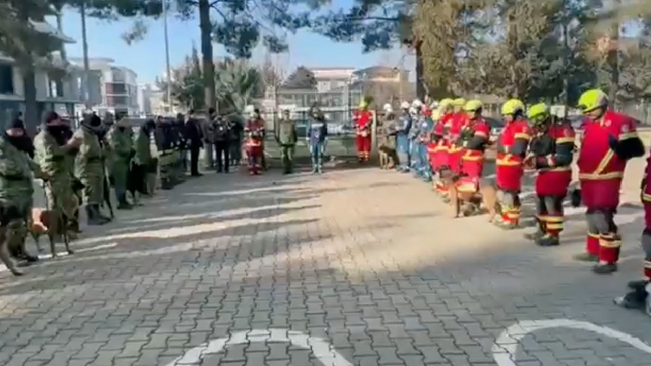 Integrantes de la Sedena, Semar y Cruz Roja, así como binomios caninos, se reunieron en emotiva ceremonia para despedir a Proteo, perrito rescatista fallecido en el cumplimiento de sus labores en Turquía.