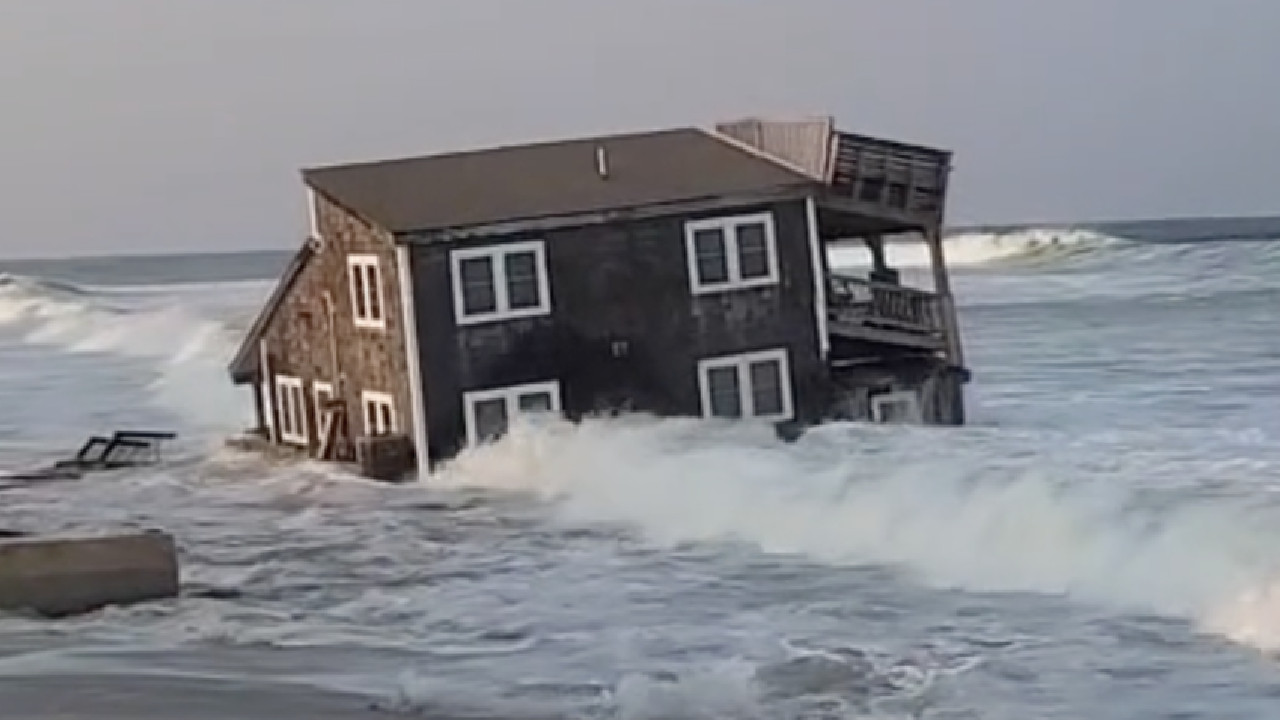 En Carolina del Norte, una casa se derrumbó sobre sus cimientos debido al intenso oleaje provocado por el paso del huracán Ernesto que subió a categoría 2.