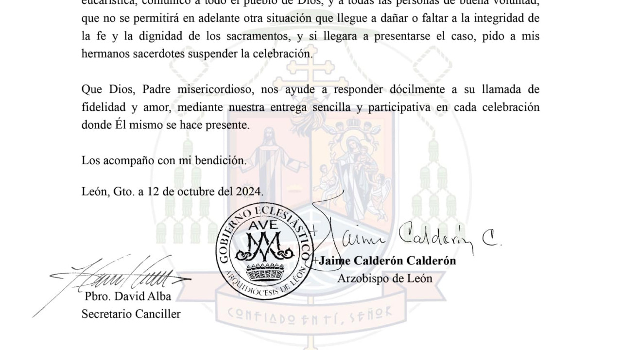 “No se permitirá en adelante otra situación que llegue a dañar o falta a la integridad de la fe y la dignidad de los sacramentos, y si llegara a presentarse el caso, pido a mis hermanos sacerdotes suspender la celebración”, se lee en un escrito.