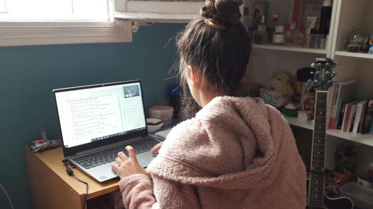 El estudiante suelta otro improperio al darse cuenta que tiene el micrófono abierto, pero la maestra sólo se ríe y le dice “todavía lo tiene abierto, silencio, ¡ay! No puede ser posible”.