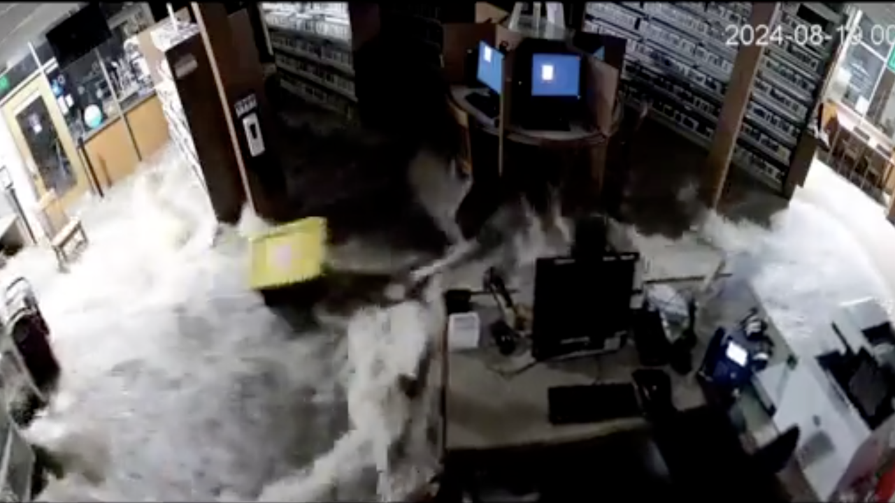Las cámaras de seguridad captaron cómo el agua rompió una pared y se llevó libros, equipos, estantes y valiosos documentos.