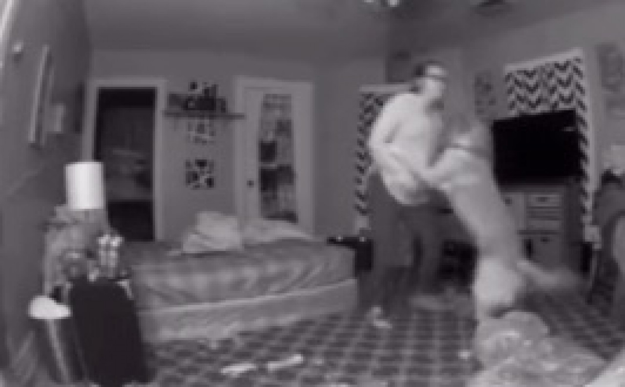 Una cámara de seguridad captó justo el momento exacto en que una mujer, tras una noche de fiesta se dirige a su cama, pero se tropieza, momento en que la salva su lomito Jax, un Golden retriever.