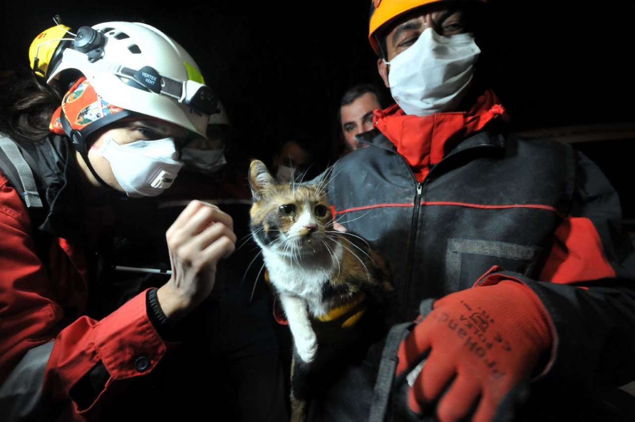 El felino, bautizado como Umut (esperanza en turco), permaneció unas 30 horas bajo un edificio colapsado y fue rescatado por Bob, un can de la Asociación de Búsqueda y rescate de Turquía.