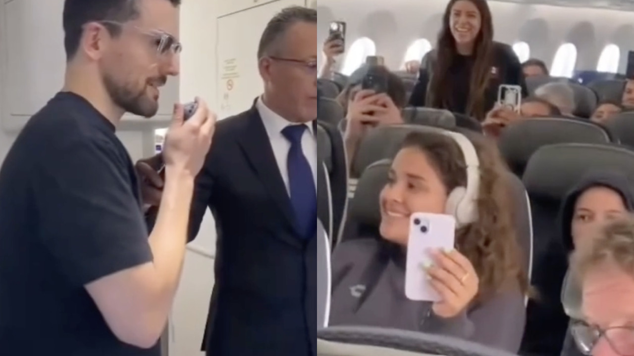 “Les deseamos suerte y pum, lluvia de medallas”, les dijo causando risa entre los pasajeros.