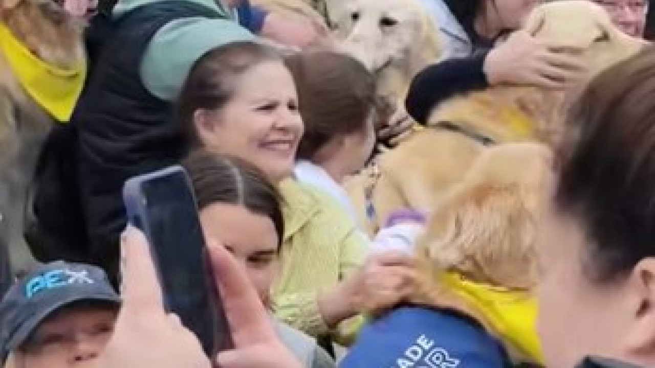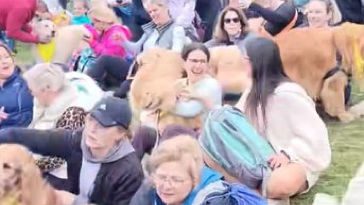 Previo al maratón de Boston, se realizó un encuentro masivo de perritos de raza golden retrievers, en Boston Common, desatando ternura.