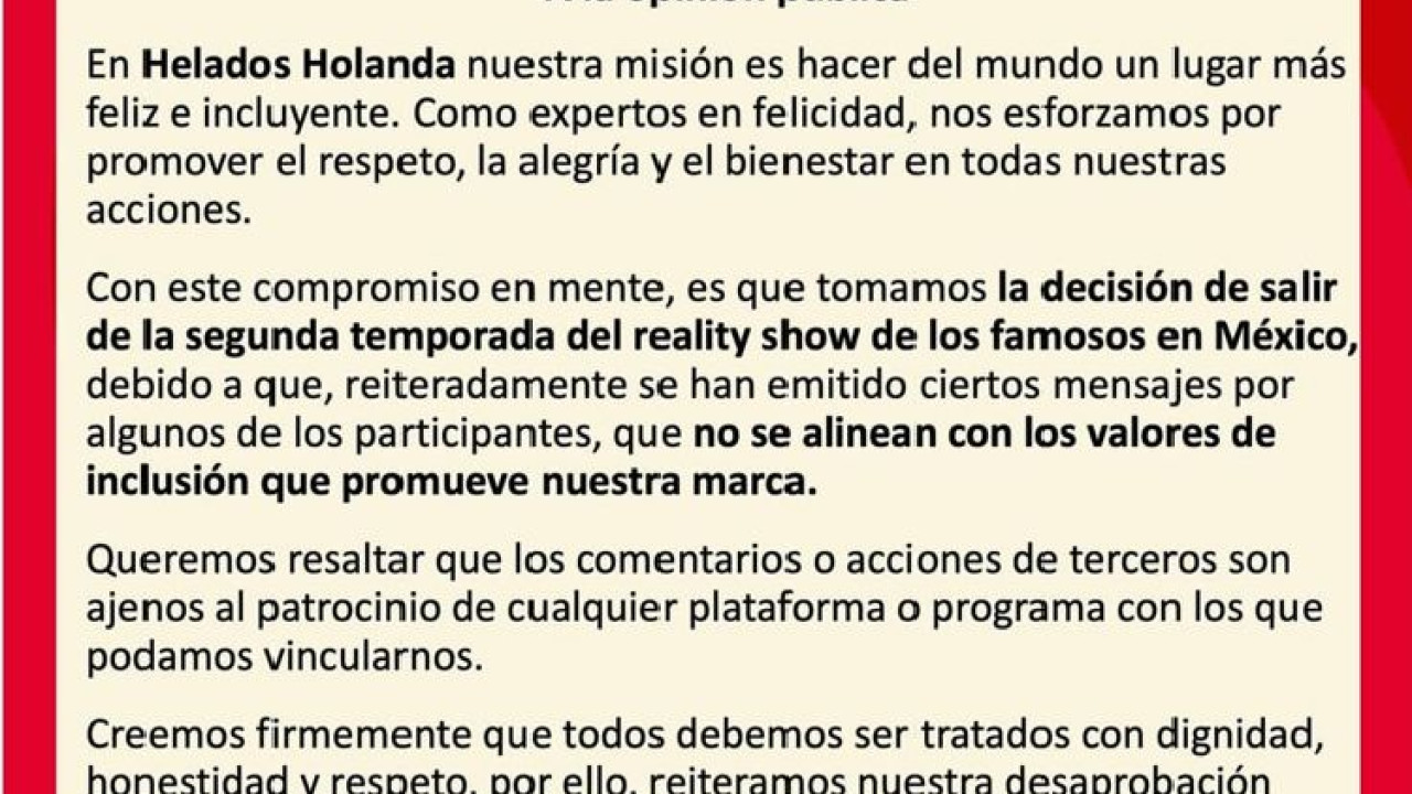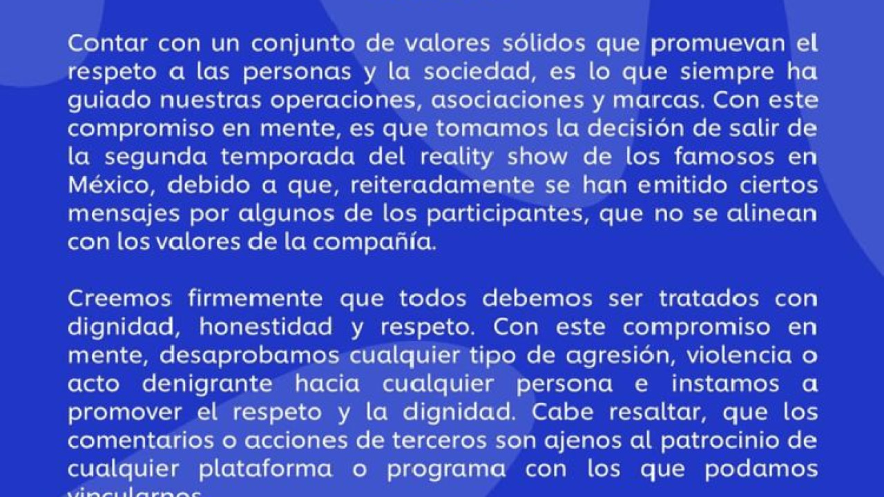 En diferentes comunicados, las marcas aseguraron que no comparten acciones y comentarios de integrantes, ya que sus compañías promueven la inclusión y diferentes valores.