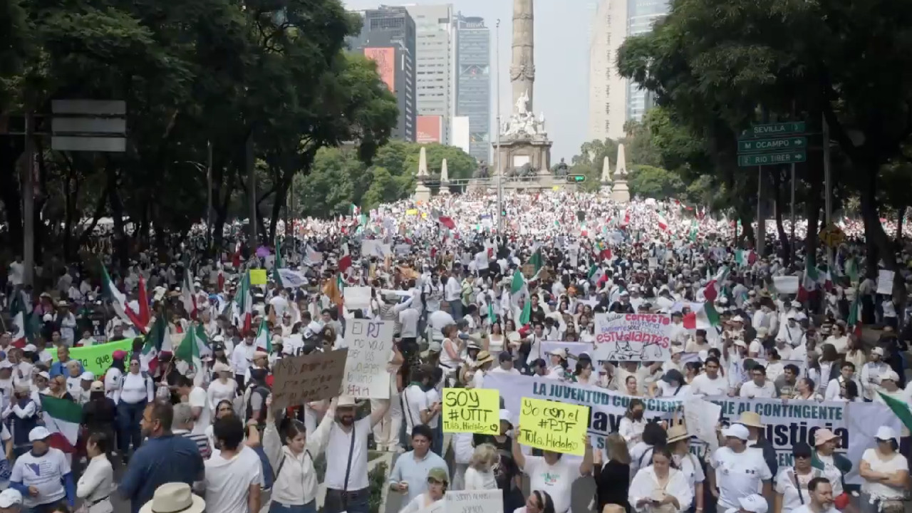 Nutrida multitud de estudiantes marchan desde el Ángel de la Independencia contra la reforma al Poder Judicial, cuya discusión en la Cámara de Diputados acaba de ser frenada.