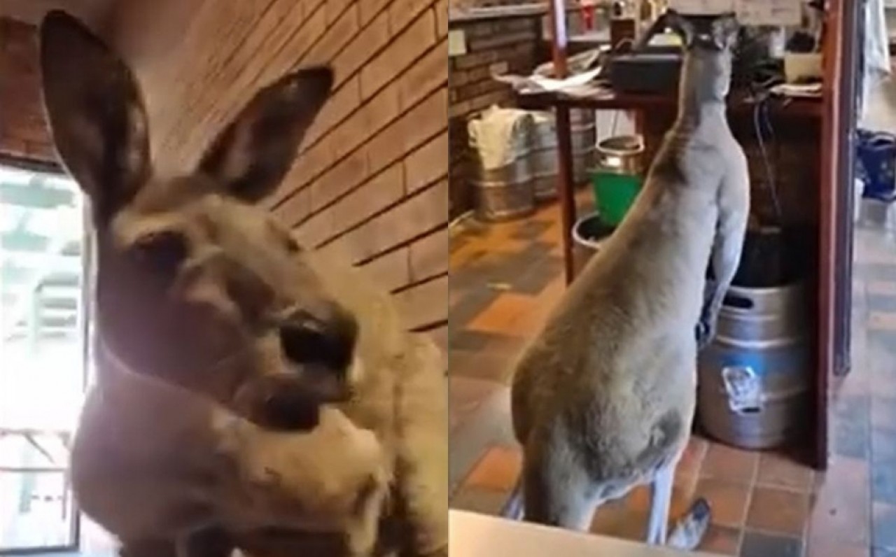 En el video compartido por la mesera, se ve al canguro entrar y curiosear por el bar muy tranquilo y luego salir y unirse a sus compañeros.