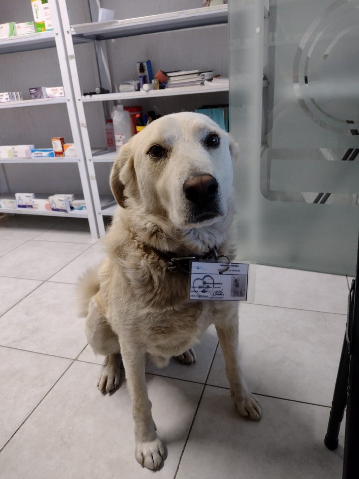 “Matute” es un perrito rescatado de la calle, tiene 12 años y ahora es jefe de seguridad de la farmacia Victoria, de la sucursal Villas de Pachuca, en Pachuca, Hidalgo.