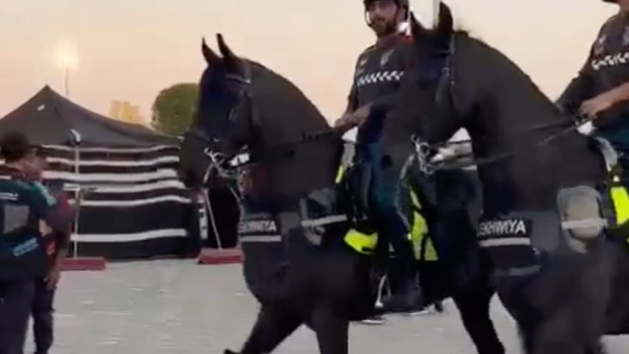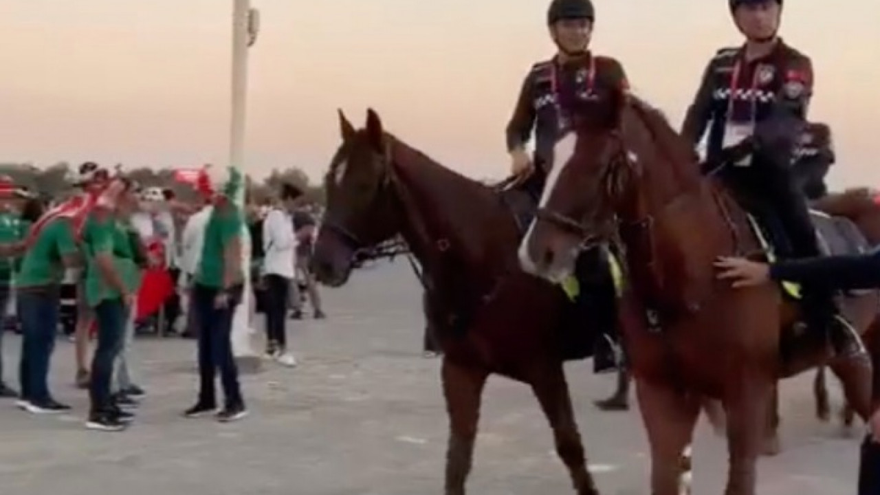 Los nacionales siguieron a la real policía montada de Doha, que realizaba rondines de vigilancia durante la Copa del Mundo.