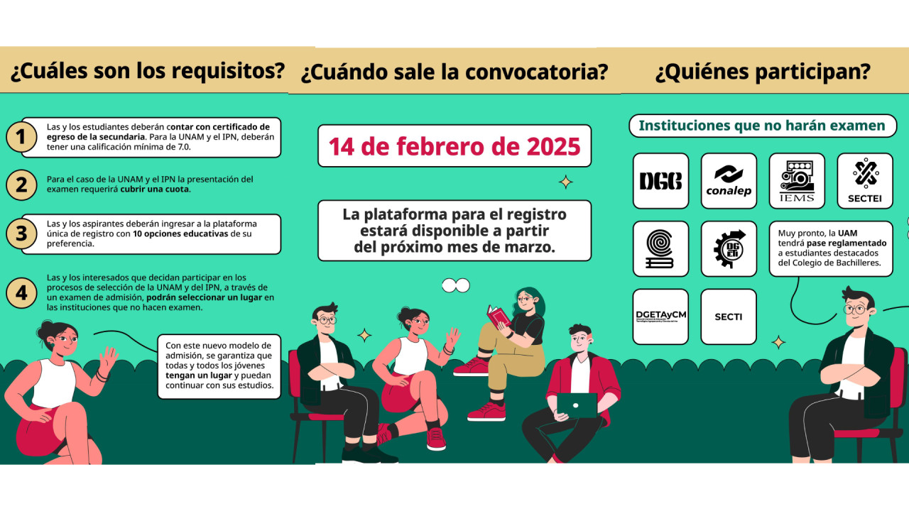 El gobierno se encargaría de asignar el lugar, aunque no detalló bajo qué criterios; aunque el Politécnico Nacional y la UNAM sí realizarán un examen de admisión a sus aspirantes.
