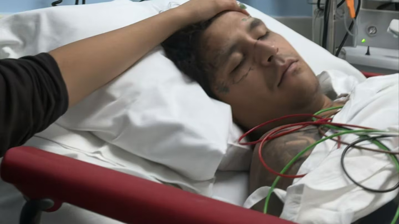 "El forajido" se observa presuntamente en compañía de su esposa, Ángela Aguilar además de estar cubierto por una serie de cables de algún aparato médico.
