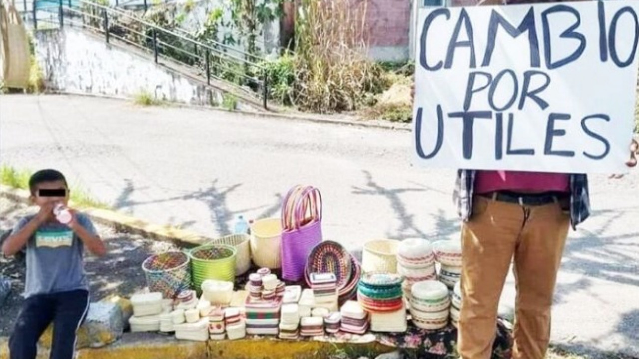 Se desconoce qué motivó al vendedor a intercambiar sus artesanías por útiles, pero usuarios ya lo buscan para ayudarlo.